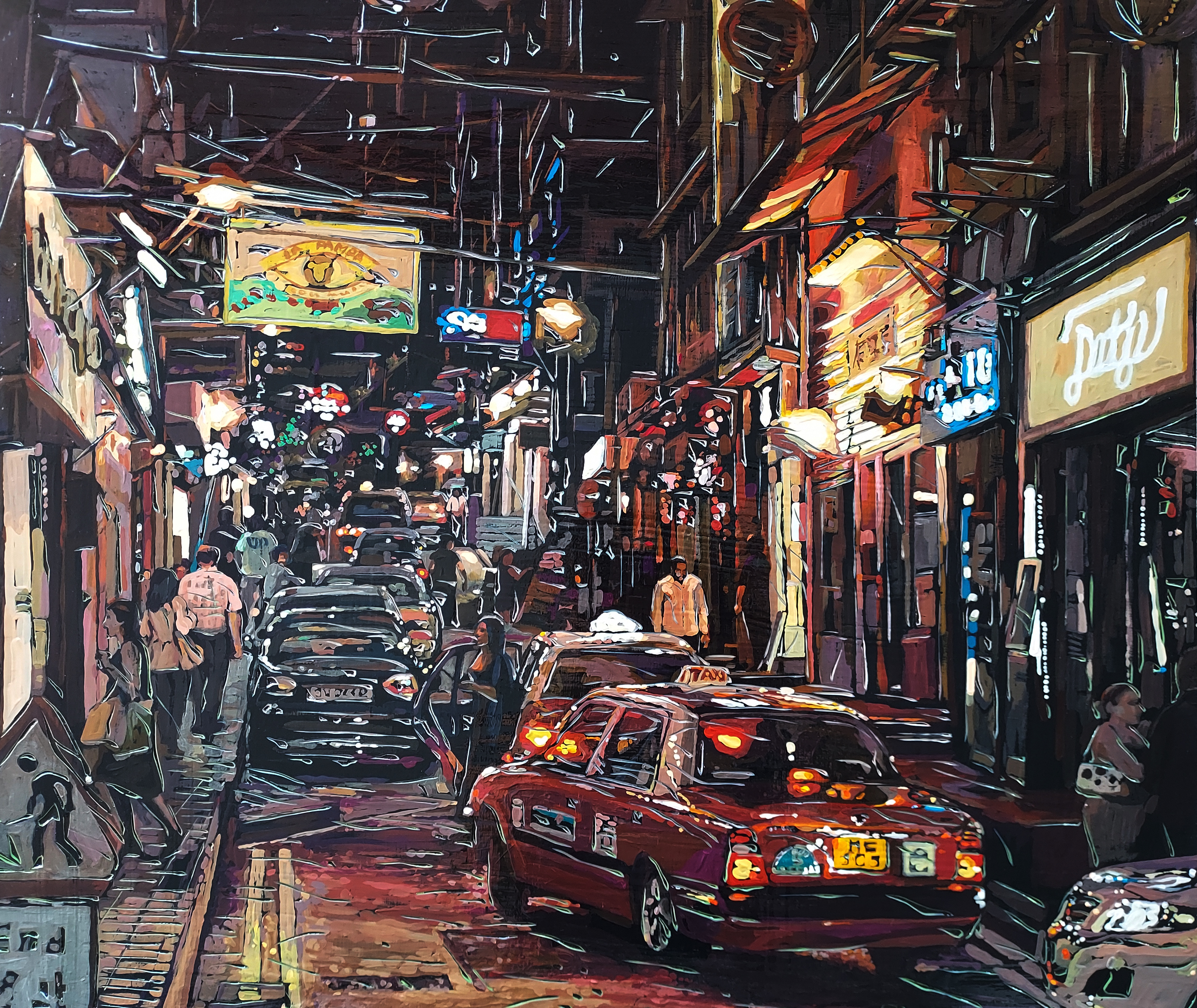 박상희, 소호 스트릿, 캔버스에 아크릴, 시트지컷팅, 53x45.5cm, 2022
