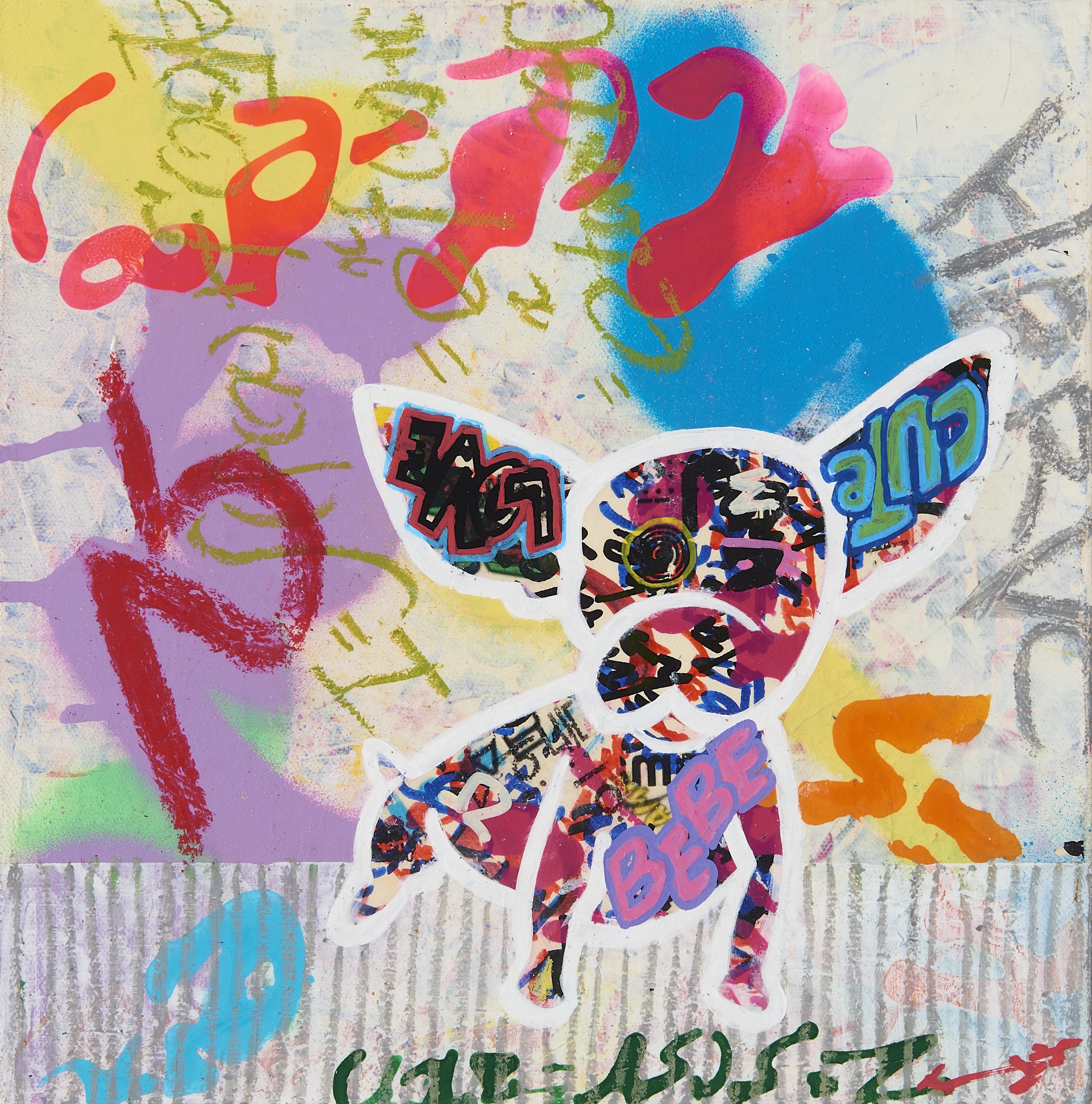 서경희, 기호의 유형 캔버스에 아크릴, 오일파스텔, 콜라주, 아크릴 펌프 마커, 스프레이, 30x30cm, 2025